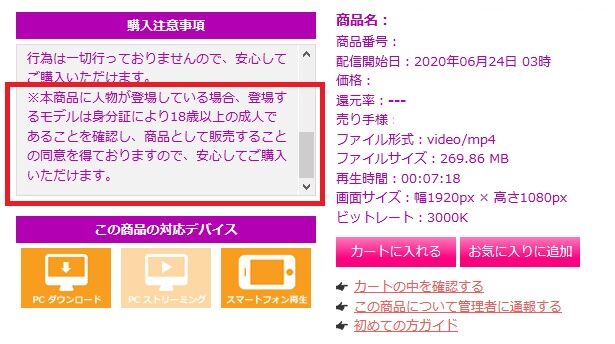が、心配はご無用です。AVmarketにはどの商品にも必ず以下の注釈(上記画像)がありました。