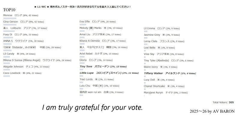 2025年10月からスタートのL1WC海外ロリ対決。予告通り半年経過で終了することにした。